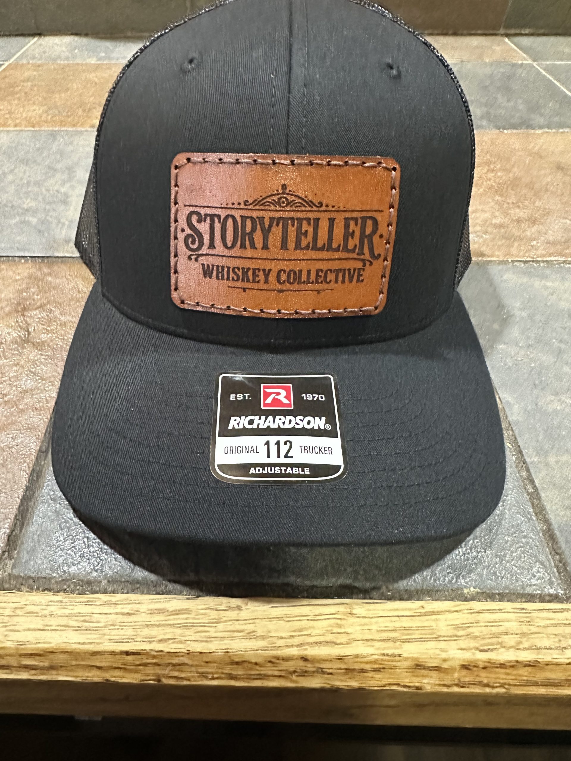 Black Richardson 112 hat with full grain leather patch sewn on the front.
