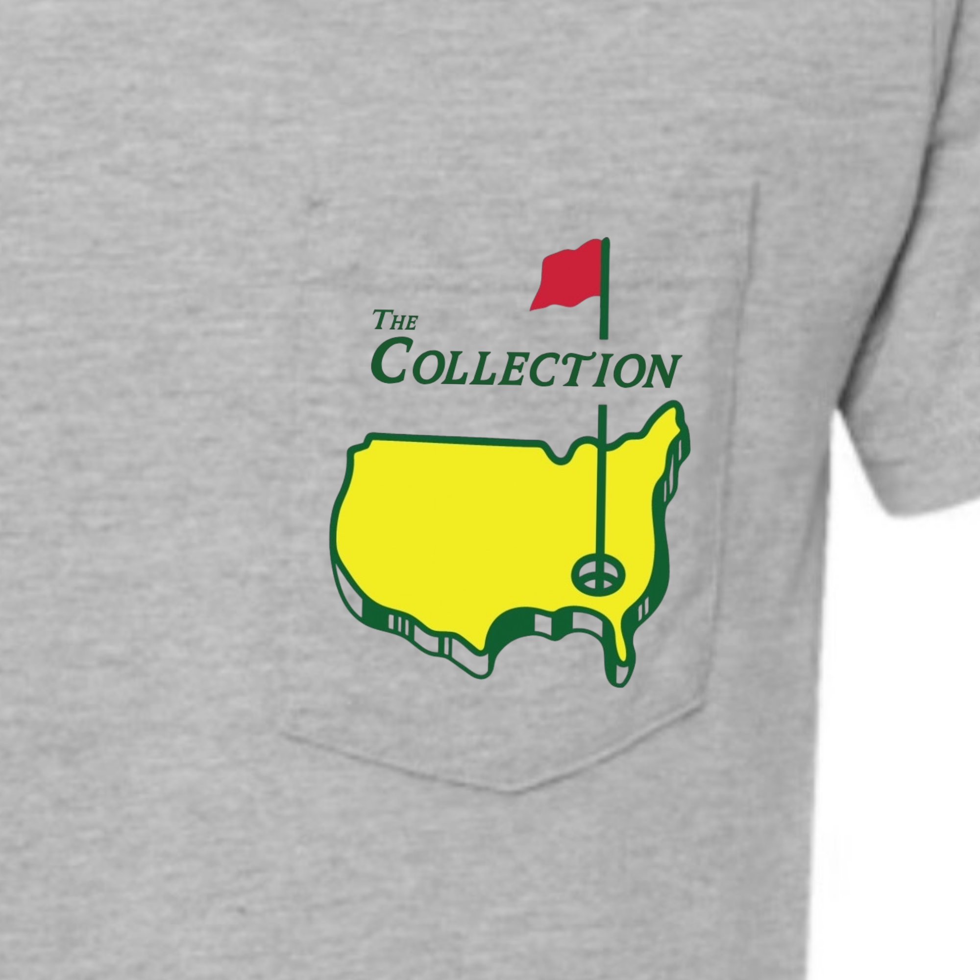 The Collection Augusta Logo printed on a Heather Grey Tultex Heavyweight Frocket Tee.