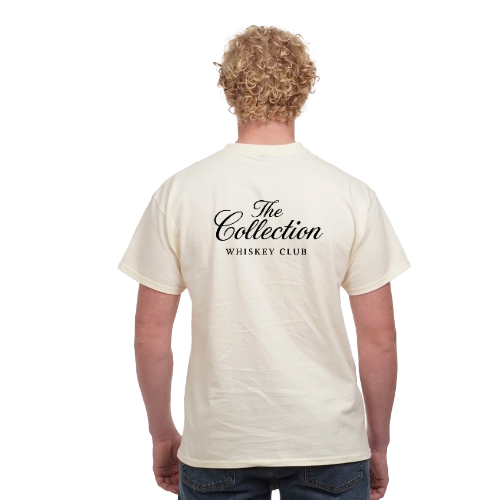 Off-White Gildan G500 with a black screen printed logo on the front and back.